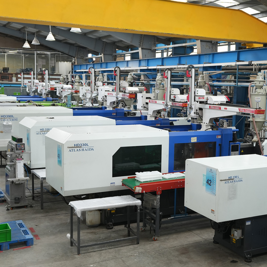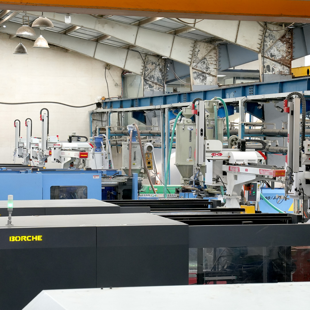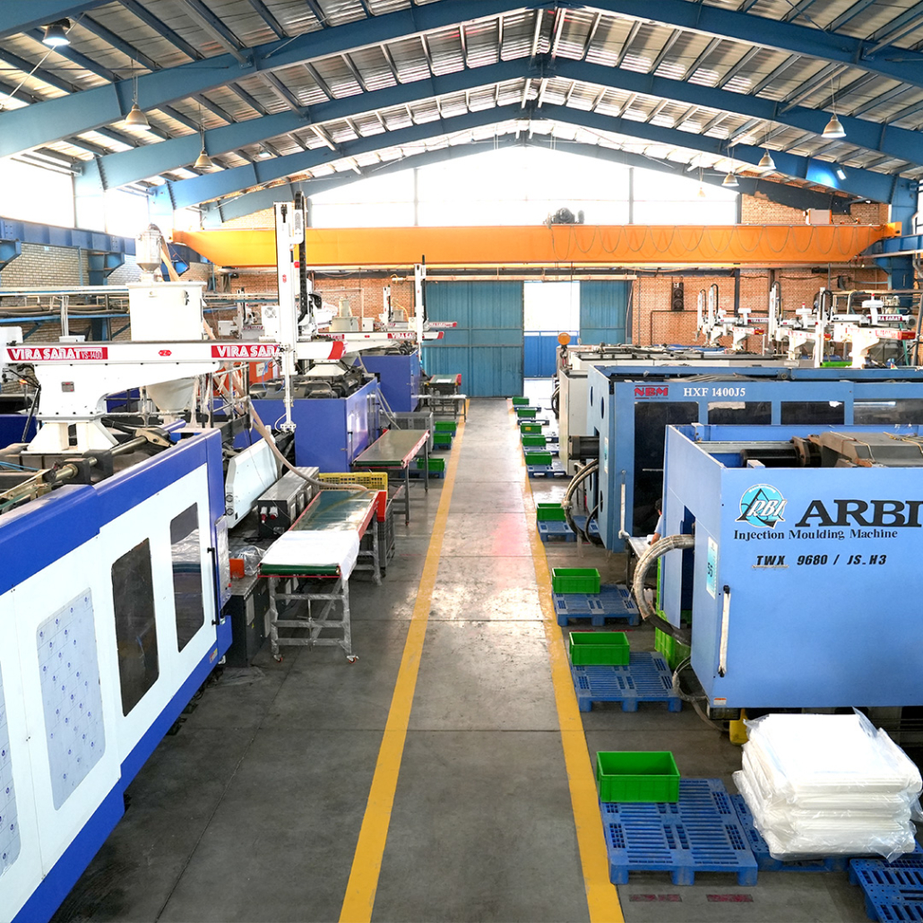 مجهز به بیش از ۱۵۰ دستگاه تزریق پلاستیک با ظرفیتهایی از ۶۰ تا ۴۰۰۰ تن، با قابلیت استفاده از سیستمهای راهگاه سرد و گرم